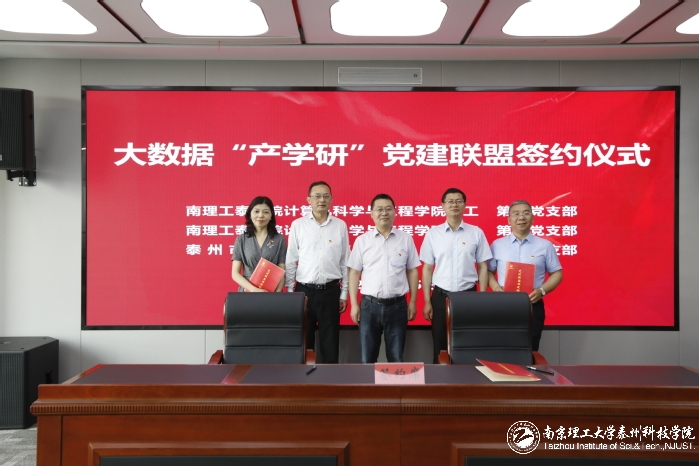 在与会领导的见证下,计算机学院与泰州企业征信服务有限公司、泰州市大数据发展有限公司分别签订校企合作协议,计算机学院教工第一党支部、第二党支部与金控集团第六党支部签订大数据“产学研”党建联盟共建协议,并合影留念。