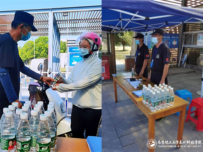 为保障员工身体健康,学校采购大量矿泉水、工作餐,后勤保卫处还备有清凉油、人丹等消暑物资,开放教工之家等多处休息室,安排大家两人一组、半小时一班、轮班休息。