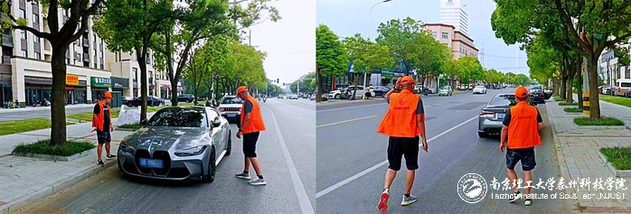 “在提升学校颜值的同时,后勤人还肩负起市区迎宾路的文明创建工作。”后勤保卫处袁玮老师是一名退役“老兵”,曾获评2021年最美海陵人——退役军人先进典型。在迎宾路值勤中,袁玮和大家一起冒着高温,整治道路车辆乱停乱放、保证道路干净整洁。