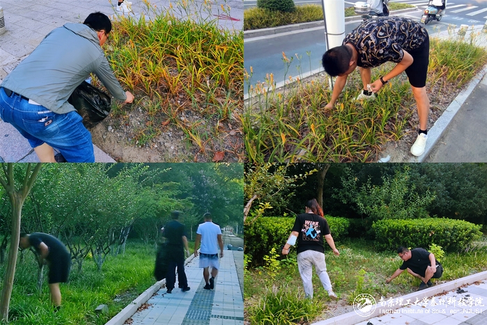 白天,后勤人冒着高温,顶着烈日穿梭在校园内外,清除绿化带白色垃圾和杂草;伴随夜色的逐渐浓郁,他们还要肩负起校园亮化调试工作,为校园夜景“增光添彩”。