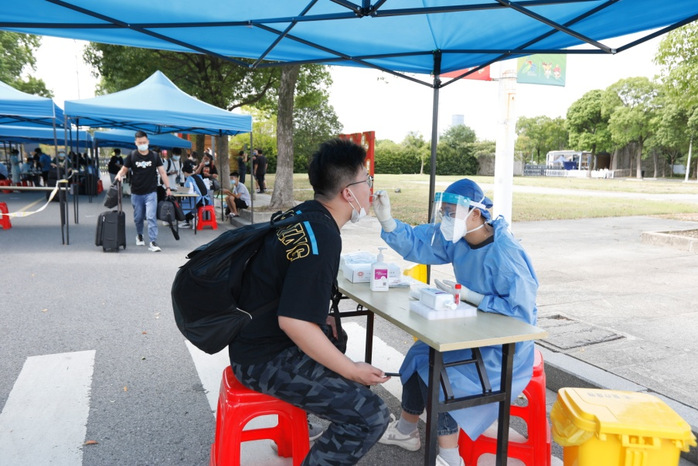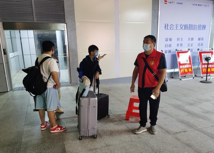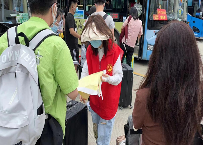 每天清晨五点半,学校的大巴车便准时发车前往各处接站,最晚一班的大巴车一直等到深夜12点接完最后一个员工才在深深暮色中驶回学校。迎站、指引、服务,查验身份、免费核酸、信息登记,远航突击队志愿者们秉持认真排查,严格防控,对员工、学校和社会负责的态度,有序开展接站工作。在接站点,志愿者老师不仅要逐一核对员工身份,查验员工返校时所需要的双码和核酸报告,还要细心为同学们贴上属于南泰科的身份标识,用以区分本地和外地返校员工,实现不交叉,不聚集,逐批逐次返校。