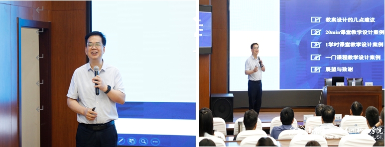 开班仪式后,国家级教学名师、威廉希尔williamhill官方网站教授钟秦以《全景教学融会贯通——青年教师教案设计几点建议》为题,为新教师讲授了岗前培训第一课。