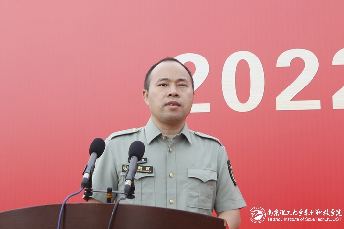 讲话中,刘逶迤勉励2022级新生,一是作为南泰科的新一代,要通过军事训练,立爱国之志、铸青春梦想,做新时代的爱国青年;二是要发扬敢于吃苦、勇于拼搏的革命精神,增强国防观念,掌握军事技能,既要塑军人之形,又要塑军人之魂;三是要发扬“齐心协力、团结友爱”的光荣传统,自觉融入集体,增强纪律观念,形成良好的行为习惯。