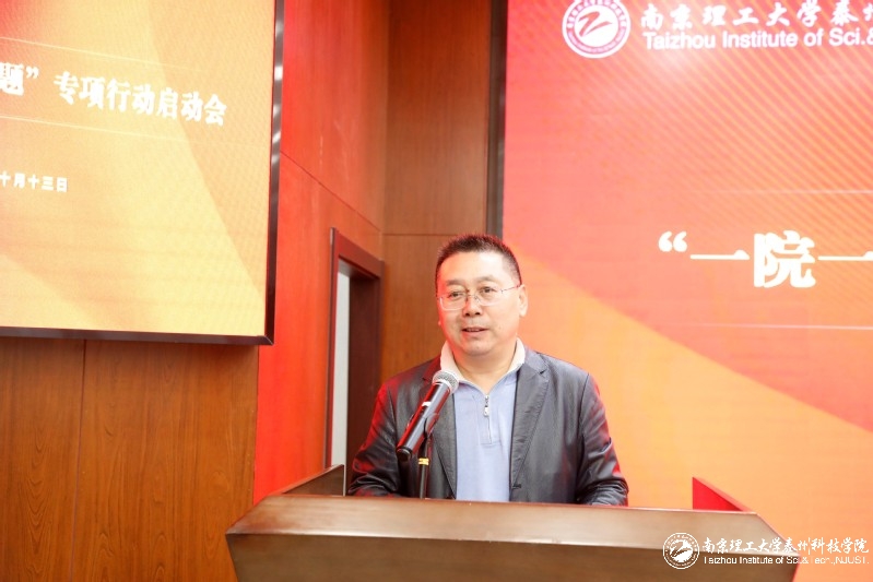 电子电气工程学院经理董恒平代表各二级学院经理发言,他在讲话中表达了对“科研和社会服务重要性”的认识,对学校“一院一区,百企千题”专项行动对教师发展、学校发展的重要意义的认识,同时,介绍了电子电气工程学院为落实、落细行动方案而绘出的明确的行动图。