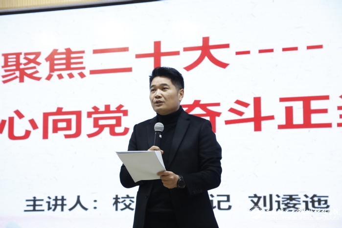 刘逶迤以《聚焦二十大——青春心向党 奋斗正当时》为题,从“使命是什么、力量在哪里、未来向何处”等三个方面出发,引领同学们深刻领会党的二十大精神,深刻理解中国式现代化的科学内涵,帮助员工扣好大学“第一粒扣子”。刘逶迤指出,作为新时代青年,任何时候,都不能为追求世俗意义上的成功而泯灭良知、迷失自我,也不应以“诗和远方”之名,行“佛系”“躺平”、逃避责任之实。幸福都是奋斗出来的,奋斗本身就是一种幸福。要将青春之“小我”融入时代之“大我”,时刻鞭策自己,在青春的赛道上奋勇争先,争做堪当民族复兴重任的时代新人。最后,刘逶迤勉励同学们,要秉持“明体达用”的校训精神,以历届优秀学子为榜样,不忘初心、牢记使命,努力学习,争做有理想、有本领、有担当的好青年,为以中国式现代化全面推进中华民族伟大复兴贡献青春力量。