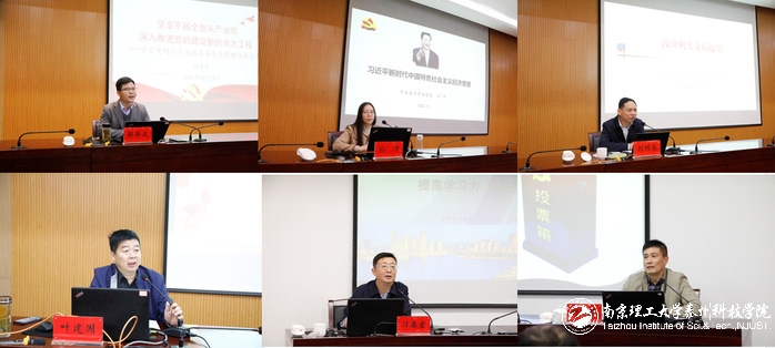 组织人事部部长潘浩对培训班总体情况进行回顾和总结。宣传部部长许子健、基础科学部副主任宗波、环境与制药工程学院教职工第二党支部书记夏昊云、城市建设与设计学院员工第二党支部书记祁贵国分别代表管理部门、二级教学单位、教职工党支部书记以及员工党支部书记学员发言。