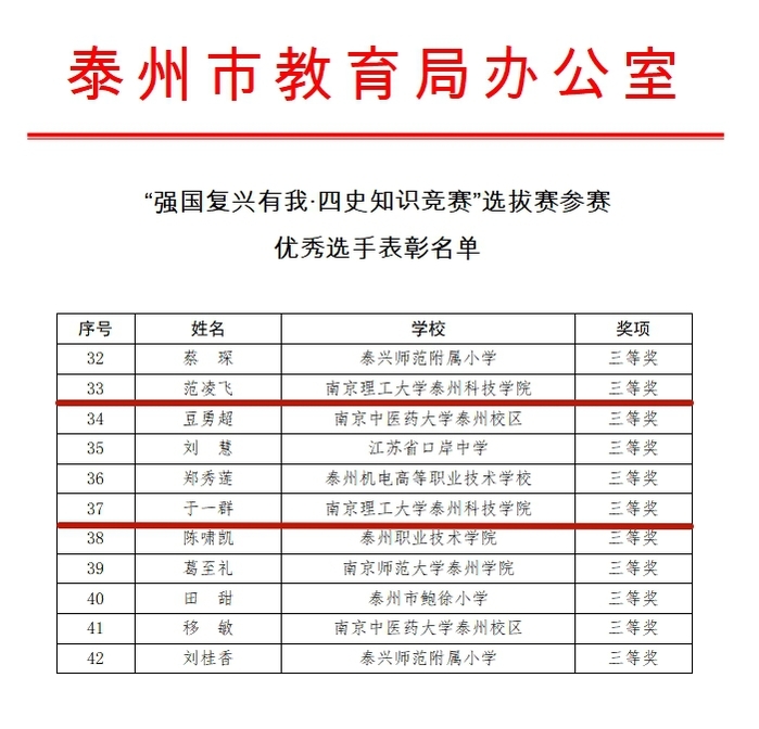 今年9月,根据市委宣传部通知精神,泰州市教育局办公室下发了《关于举办全市教育系统“强国复兴有我·四史知识竞赛”选拔赛的通知》,马研部广泛发动并积极组织师生参赛。