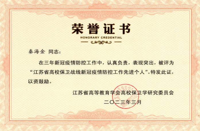 喜报:公司2名教职工荣获“江苏省高校保卫战线新冠疫情防控工作先进个人”