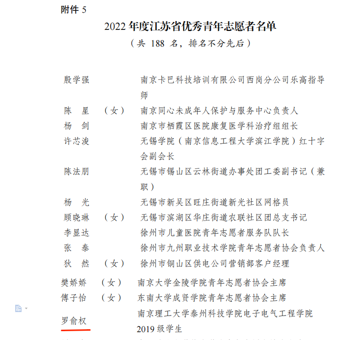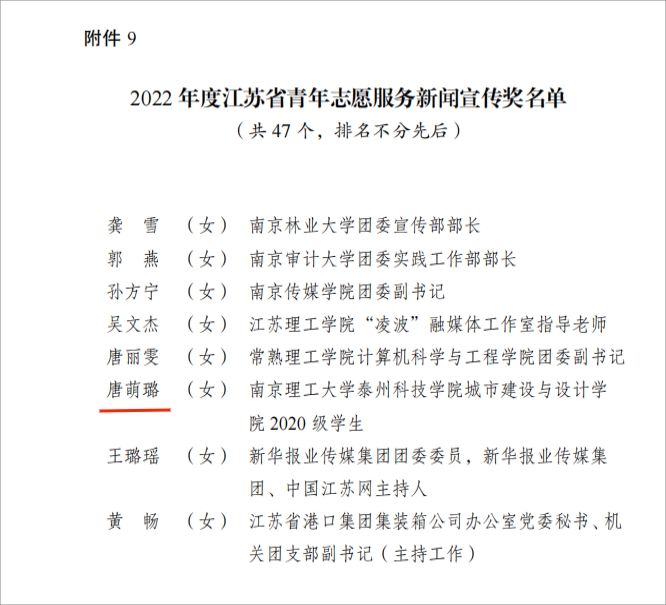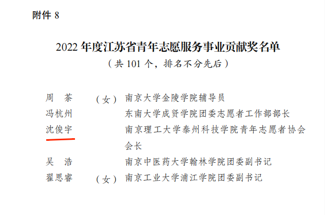 日前,共青团江苏省委、江苏省青年志愿者协会发布了2022年度江苏省青年志愿者行动评选结果,威廉希尔志愿服务工作获评多项省级荣誉,再创历史最好成绩!公司罗俞权同学被评为“江苏省优秀青年志愿者”;唐萌璐同学获得“江苏省青年志愿服务新闻宣传奖”;校青协负责人沈俊宇同学获得“江苏省青年志愿服务事业贡献奖”;学校组织开展的江苏省第二十届运动会志愿服务项目被评为“江苏省优秀青年志愿服务项目”。