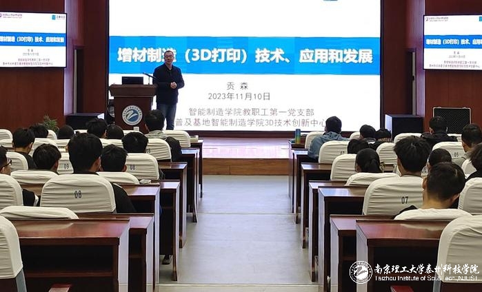 11月10日,智能制造学院在远航报告厅举办增材制造(3D打印)技术、应用与发展专题讲座。讲座邀请南京双庚电子科技有限公司总经理、江苏省工业设计学会数智制造与设计专委会副主任委员贡森作讲解,讲座由智能制造学院马常亮老师主持,相关学科教师及员工等近百人参加。