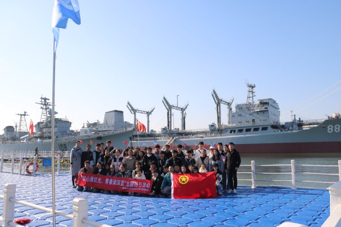 向海图强,逐梦深蓝。团员青年们身临其境,在讲解员动情的讲述下,他们仿佛看到了海军战士劈波斩浪、驰骋大海、维护蓝色国土的飒爽英姿,体会“听党指挥忠于党、能打胜仗打硬仗、作风优良为人民、爱舰爱岛爱海洋”的人民海军精神在中华民族伟大复兴进程中的重要意义,获得“沉浸式”红色体验。