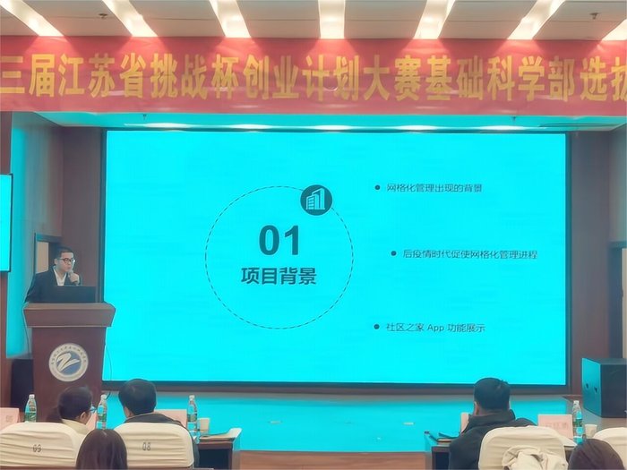 为深入学习贯彻习近平新时代中国特色社会主义思想,不断增强对国情社情的了解,将所学知识与经济社会发展紧密结合,提高创新创业的意识和能力。基础科学部(优才班)于2023年12月27日在远航报告厅开展第十三届江苏省挑战杯创业计划大赛基础科学部(优才班)选拔答辩会,本次答辩会由商学院经理许小军、校团委书记顾云海、创就办副主任户廷勇、学工处副处长薛建华、校团委副书记杨蕾、创就办马璐老师担任评委。答辩会由基础科学部(优才班)员工会主席团成员郑怡漂同学主持,各项目团队参会。