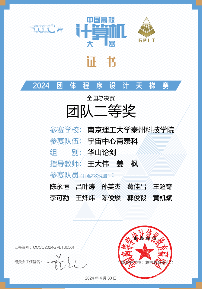 “中国高校计算机大赛-团体程序设计天梯赛”是由教育部高等学校计算机类专业教学指导委员会、教育部高等学校软件工程专业教学指导委员会、教育部高等学校大学计算机课程教学指导委员会、全国高等学校计算机教育研究会于 2016 年联合创办的赛事,于 2019 年进入“全国普通高校老员工竞赛排行榜”。本次竞赛共有580所学校近19000名选手参赛。通过比赛,同学们进一步加强了通过计算机编程解决实际问题的能力,提升了专业水平,展现了公司学子良好的精神风貌和专业素养。