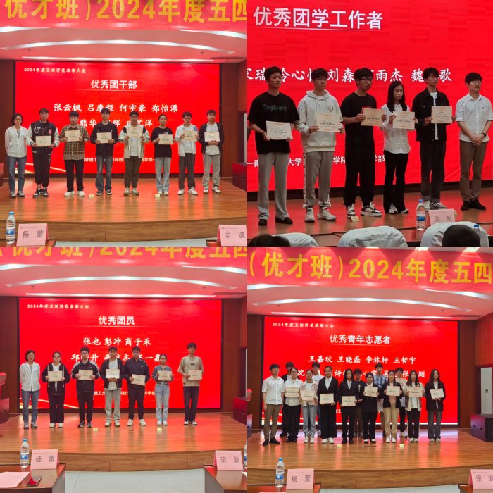 2024年度五四评优表彰大会分为“校级篇”和“基础部篇”两个篇章。