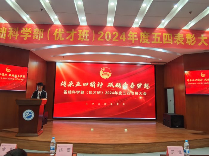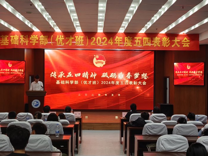 为表彰先进,树立榜样,5月30日下午,基础科学部(优才班)在远航报告厅举行了2024年度五四评优表彰大会。基础科学部副主任、直属党支部书记宗波,校团委副书记杨蕾,电子电气工程学院分团委负责人谢佩妍,基础科学部分团委负责人金魁及基础科学部(优才班)全体同学出席大会。表彰大会由23优才2班李筱航主持。