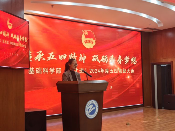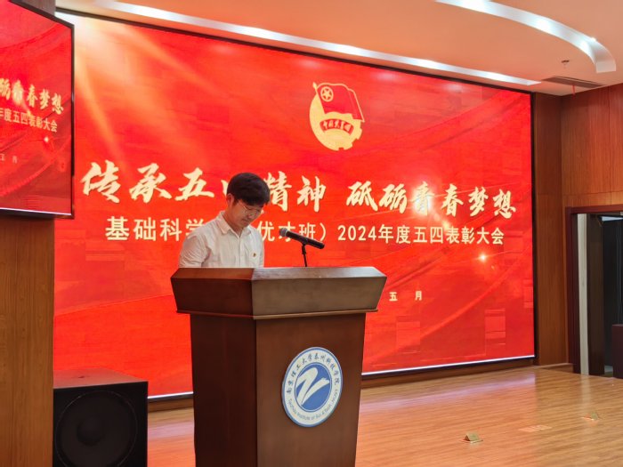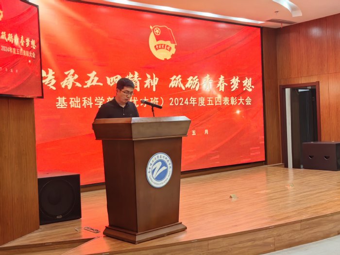 基础科学部分团委负责人金魁宣读了《共青团威廉希尔委员会关于2022-2023学年团内表彰的决定》及基础部团委表彰决定:22优才2班、23优才1班两个先进集体以及陈静羽、高慧等47个先进个人受到表彰。