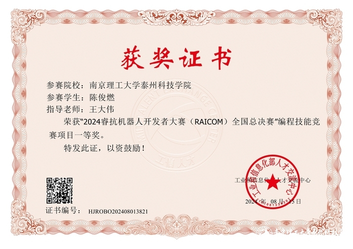 近日,2024年睿抗机器人开发者大赛(RAICOM)-编程设计CAIP赛道全国总决赛结果揭晓。公司计算机科学与工程学院姜枫、曹红根、高广银、王大伟四位教师组成的指导老师团队,指导员工在比赛中共获得江苏省一等奖2项、二等奖8项、三等奖10项。参加国赛的10位同学全部获奖,共获得全国一等奖3项、二等奖3项、三等奖4项。其中21计算机1班杨浩、陈俊燃、22软件(嵌)马宇乐三位同学获国家一等奖,实现公司在该赛事上的历史性突破。