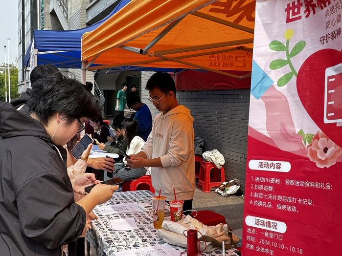 10月10日中午,校心理协会在一食堂门口开展心理健康知识科普宣传活动。根据世界卫生组织(WHO)的定义,精神卫生是一种关乎心理健康的“状态”。它赋予人们应对生活挑战的能力,促使个人潜能的实现,确保人们能够高效地学习、工作,并对社会有所贡献。