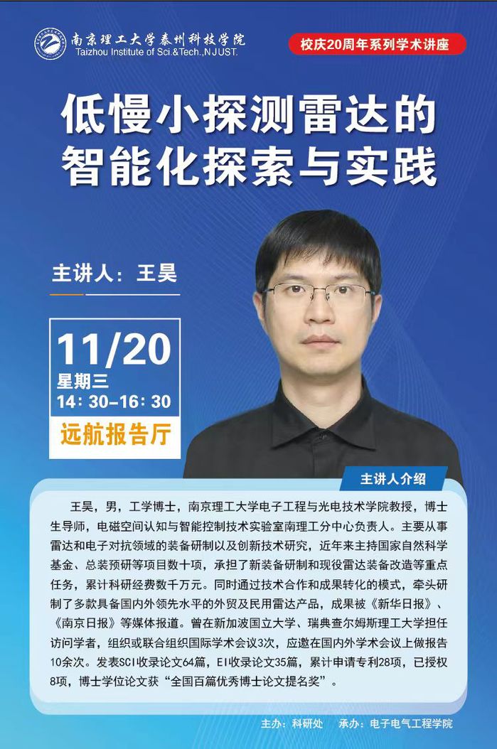 首页 校园信息 通知公告 【二十周年校庆系列讲座】低慢小探测雷达的智能化探索与实践 发表时间:2024-11-19 浏览量:1878 信息来源:科研处 作者:鲍爱军 编辑:孙康康 审核人:毕文健 回到顶部 分享: