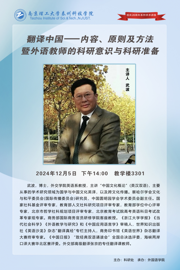 首页 校园信息 通知公告 【二十周年校庆系列讲座】翻译中国--内容、原则及方法暨外语教师的科研意识与科研准备 发表时间:2024-12-04 浏览量:1742 信息来源:科研处 作者:鲍爱军 编辑:孙康康 审核人:毕文健 回到顶部 分享: