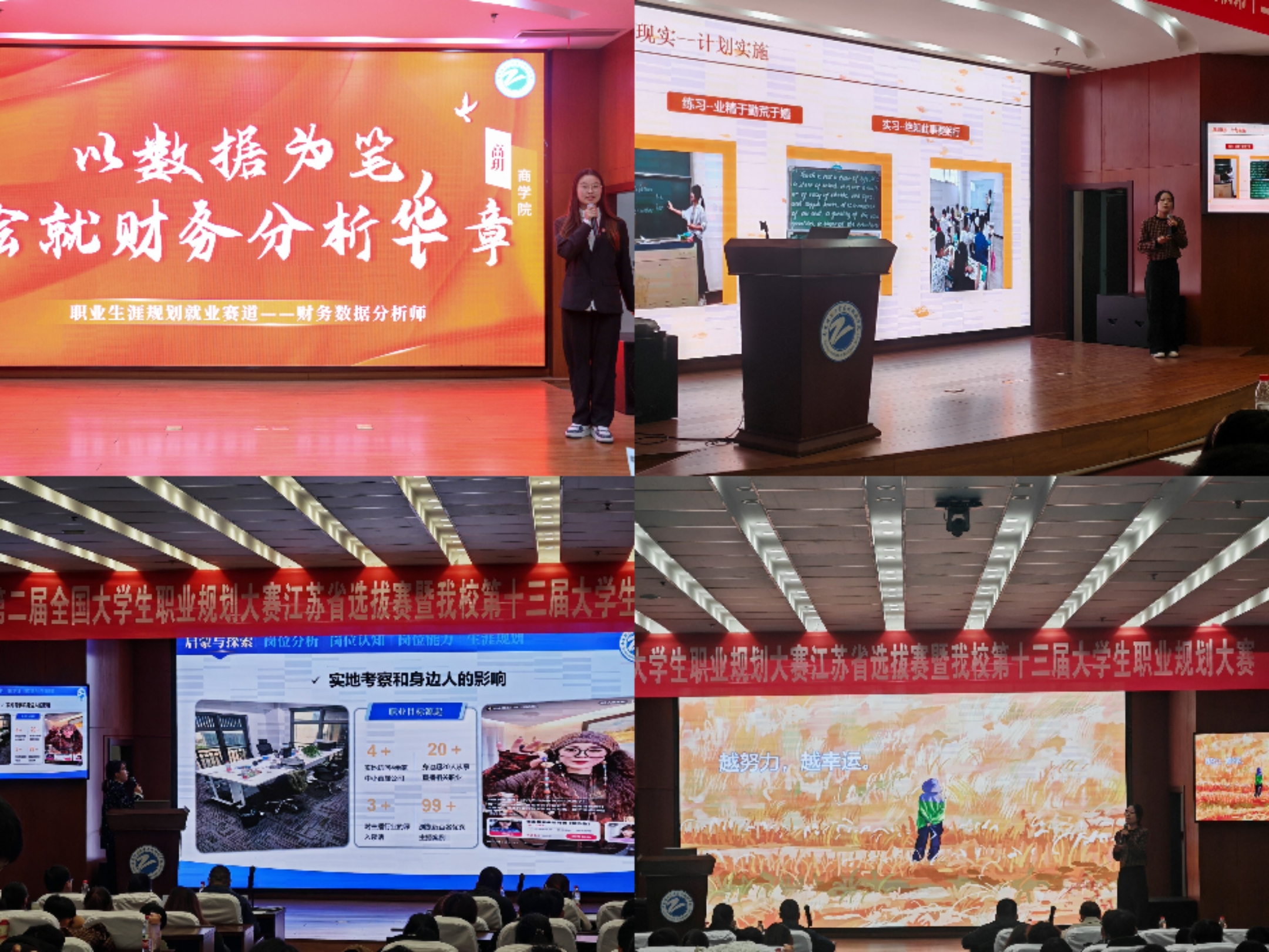 公司校赛由创新创业与就业办公室主办,商学院和基础部联合承办。校赛自2024年10月份启动以来,学校先后举办大赛动员说明会、指导教师培训会、员工动员培训会,同时在国旗广场举办生涯嘉年华等丰富配套活动,营造良好大赛氛围。经过二个月的校院两级充分宣传与动员鼓励,全校2927人报名,经过二级学院(部)初赛,复赛评审,13名选手进入成长赛道决赛,11名选手进入就业赛道决赛。决赛邀请了致远生涯负责人雷左航、首届全国老员工规划大赛优秀指导教师丁杰、方成税务师事务所经理李益以及学工、团委、心理负责人等担任现场评审专家。