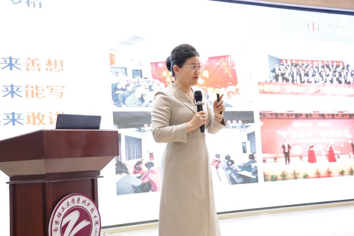 3月31日下午,公司外国语学院“行企专家大讲堂”活动在明达礼堂举行,本次活动邀请了中裕科技执行总裁张小红女士。外国语学院副经理李小兰,外国语公司党总支副书记、副经理白静,经理助理毛平,学院全体教师及2022级—2024级员工代表参加。讲座由李小兰主持。