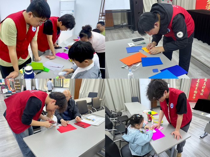 4月10日,优才志愿者们走进泰康社区,开展了一场“巧手绘童心”不织布书签手工制作活动。活动现场,色彩缤纷的卡纸、不织布材料以及剪刀、胶水等工具一应俱全。主讲人杨小刚同学通过有趣的讲解视频,向孩子们普及不织布书签的制作方法和环保理念。活动过程中,志愿者们分步骤演示裁剪、拼接、装饰等技巧,并手把手指导孩子们。在志愿者的悉心教导下,孩子们将不织布变成了充满童趣的卡通动物、花朵、星星等主题书签。通过这次活动,孩子们不仅掌握了基础手工技巧,还增强了节约资源、保护环境的意识。