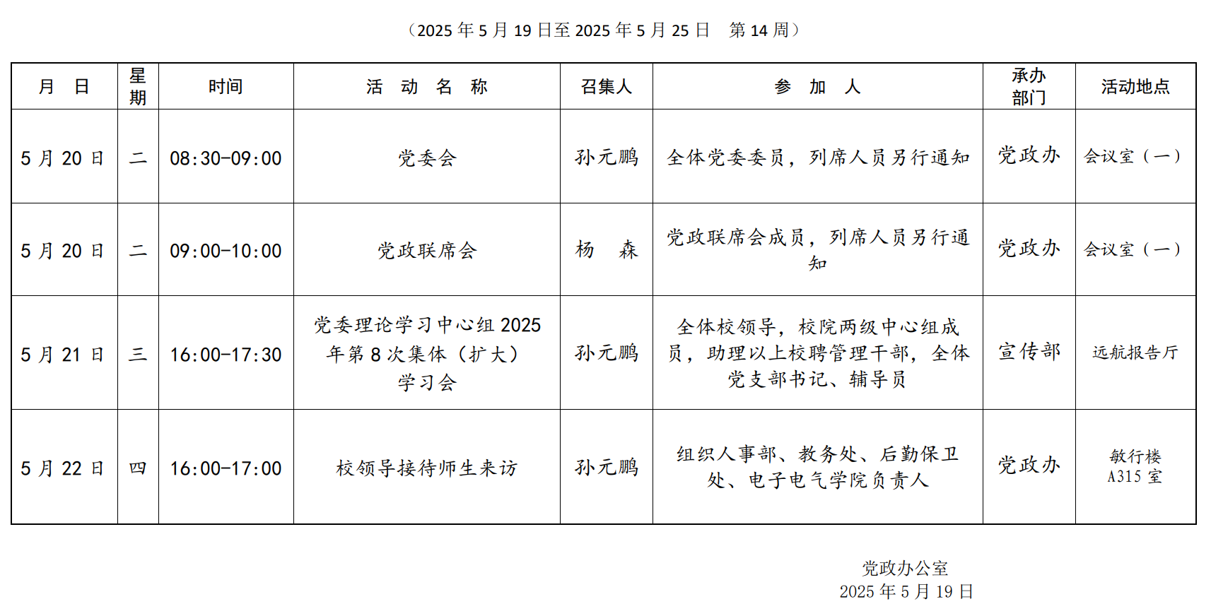 集团第十四周主要会议安排