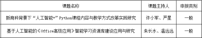 根据《关于做好2025年江苏本科高校“人工智能通识课程教学改革研究”专项课题的通知》要求,经个人申报、校内外专家评审,现将推荐结果予以公示,公示期为2025年6月3日-6月7日,如对结果存有异议,可在公示期内以书面形式向教务处反映。联系人:王凌燕。