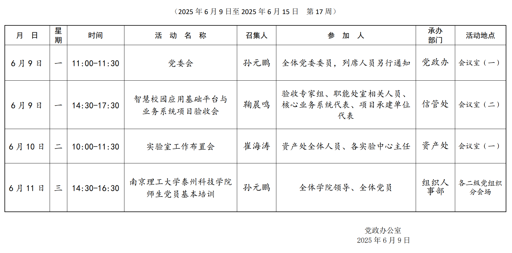 集团第十七周主要会议安排
