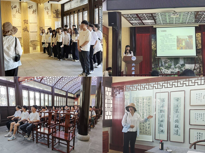 活动首站围绕廉政警示教育展开。在讲解员引导下,师生依次参观游客中心、书画院、道情馆及板桥林园。在书画院,体验现场临摹郑板桥“虚心劲节”的竹画作品,以笔墨勾勒廉政风骨;道情馆内,16分钟《板桥家风》微视频通过“衙斋卧听萧萧竹,疑是民间疾苦声”的典故,生动诠释了板桥“清、廉、正”的处世哲学;板桥林园内,廉政主题雕塑与生平展板相映成趣,师生们驻足聆听板桥 “开仓济民”“拒受贿赂” 的历史故事,在竹影婆娑中感受“非淡泊无以明志” 的精神境界。