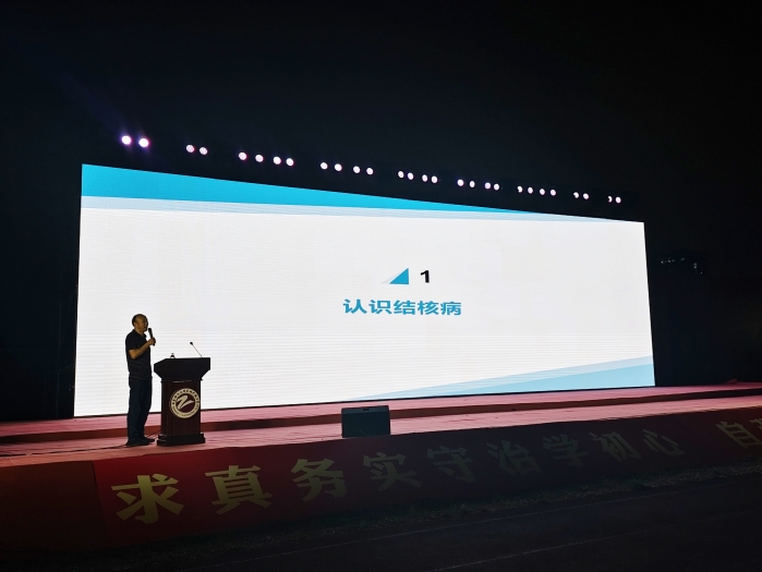 泰州市疾控中心缪昌东医师以“肺结核防治”为主题,为新生们讲解了肺结核的病因、症状、传播途径和预防措施。