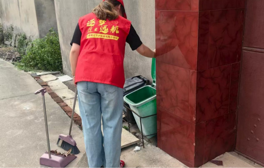 在江苏镇江丹徒区辛丰镇,实践小分队队员孙莹莹,结合调查数据,围绕乡村人才回流展开讨论,指出大多数人有较高社会共识与潜在意愿。为优化乡村人居环境,政府实施生活垃圾前端分类处置工程,为村民户均配置双分类垃圾桶,并建立常态化清运清扫机制。实践队员亦深度参与,协同开展垃圾清扫等环境整治工作。