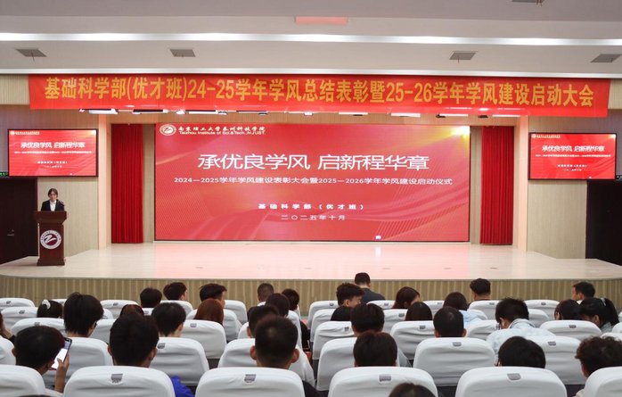 10月15日晚,基础科学部(优才班)在明达礼堂举行2024-2025学年学风建设表彰大会暨2025-2026学年学风建设启动仪式。