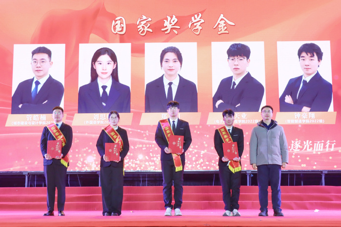 在表彰环节中,国家奖学金、青年五四奖章、董事长奖章获得者依次上台领奖,展现了南泰科学子勤学笃行、全面发展的精神风貌,树立了可见、可学的青春榜样。