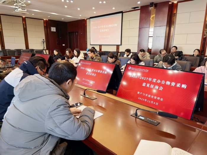 为提升采购资金使用效益,更好地服务保障教学、科研与行政工作,12月8日下午,学校资产与实验室管理处组织召开2026—2027年度办公物资采购意见征询会。会议邀请十余名二级学院及相关部门教职工代表参加,共同围绕办公物资需求计划的科学化、精细化建言献策。