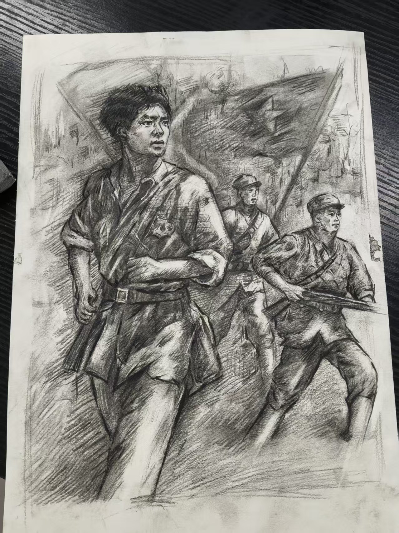 同期学院举办“以画铭史·青春铸魂”绘画大赛,12月初完成评审,十余幅优秀画作脱颖而出,作品以多种绘画形式呈现抗战岁月场景与精神,获奖作品在学院办公室展览一周。
