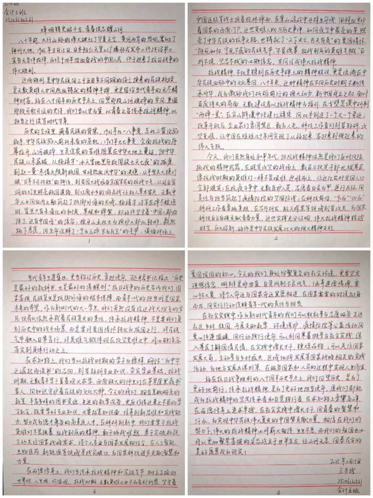 本次系列活动,不仅是对历史的深情回望,更是对未来的响亮号角。成功地将爱国主义教育、理想信念教育融入员工日常学习生活中,使“天下兴亡、匹夫有责”的爱国情怀,“百折不挠、坚韧不拔”的必胜信念,深深植根于商学院师生心中。大家纷纷表示,必将铭记历史带来的深刻启示,珍惜来之不易的和平与发展环境,将抗战精神转化为锐意进取、勤奋钻研的强大动力,努力成长为有理想、有本领、有担当的时代新人,在建设社会主义现代化强国的新征程上书写无愧于先烈、无愧于时代的青春华章。
