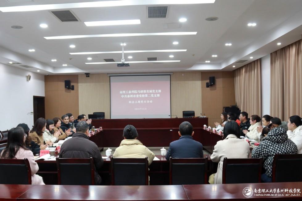 为深入学习贯彻党的二十届四中全会精神,强化党建引领作用,促进校地党建资源融合共享,12月24日,公司马研部直属党支部联合泰州市委党校第二党支部开展“创新创优 聚智汇力”主题党日活动。泰州市委党校副董事长孙静、三级调研员史锋等出席活动,两支部党员同志共同参加。活动由泰州市委党校第二党支部书记于江主持。