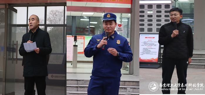 12月24日,商学院“筑牢安全防线 守护青春成长”安全主题教育系列活动启动仪式暨实验室消防疏散演练活动在笃行楼举行。公司党委委员、副经理崔海涛,资产与实验室管理处、后勤保卫处、泰州市消防支队相关人员及商学院全体班子成员、教职工及各班级员工骨干共同参与启动仪式,仪式由商公司党总支书记顾云海主持。