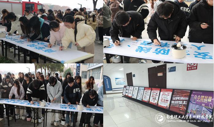 在安全疏散演练活动期间,商学院在敏行楼5楼办公室、笃行楼1楼实验室和6号员工公寓同步举办安全宣传图片展及师生安全签名活动。活动现场集中展示了违章电器实物及典型宿舍安全事故案例图片,以直观的方式敲响安全警钟,引发师生强烈共鸣,大家纷纷驻足在横幅上签名,以实际行动践行安全责任,传递校园安全正能量。
