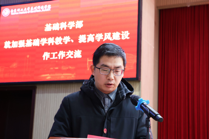 在交流发言环节,外国语学院经理李小兰、基础科学部副主任、直属党支部书记宗波围绕加强基础课教学、提升学风建设水平作交流分享,结合各自工作实际提出务实举措。