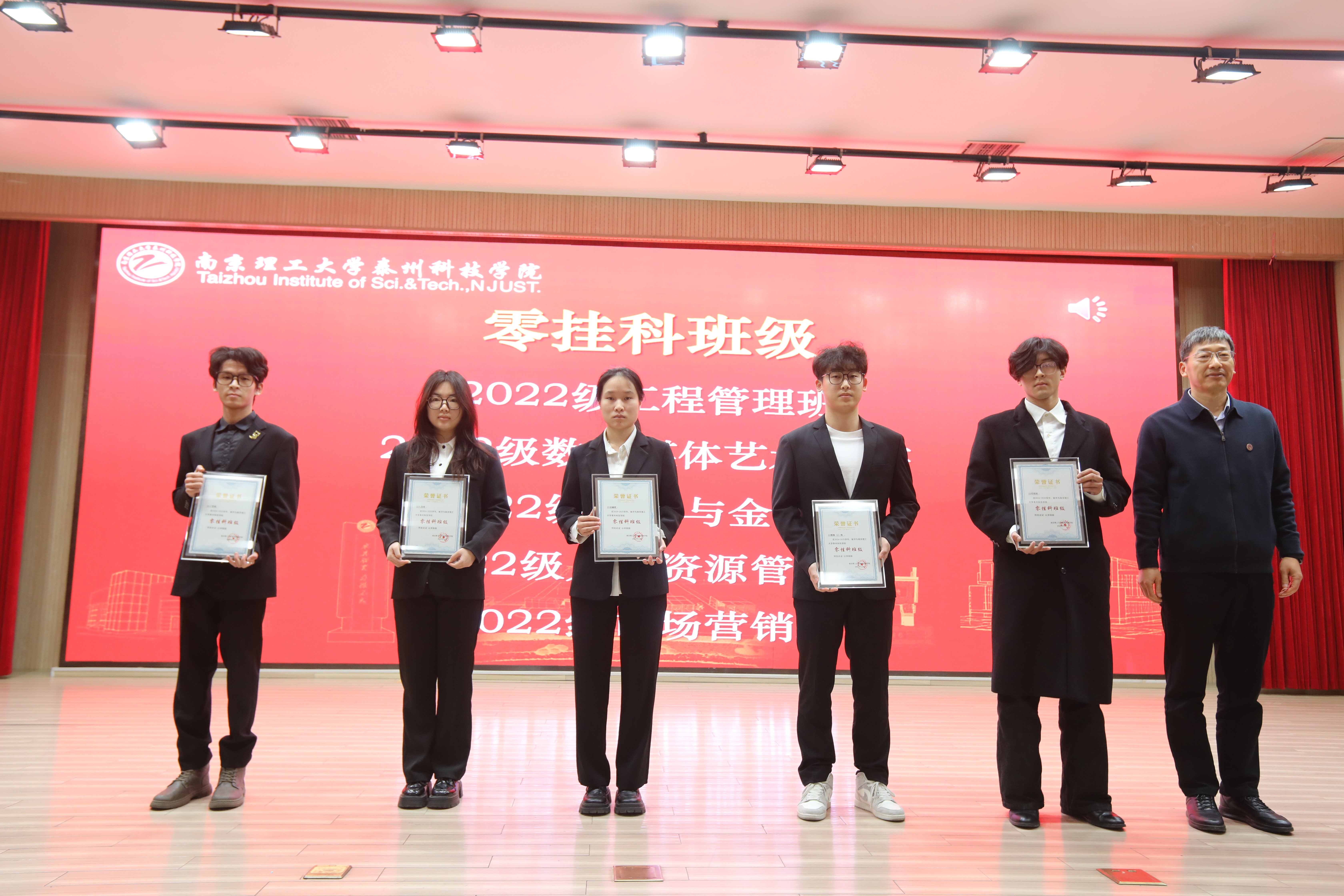 随后,大会对大学英语、高等数学、大学物理三大基础学科竞赛中的优秀团体与个人进行表彰,同时授予一批班级“零挂科班级”称号,表彰学风建设进步集体。