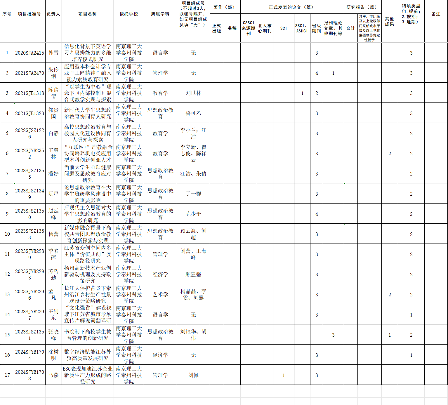 根据《省教育厅办公室关于做好2025年度高校哲学社会科学研究项目中期检查和结项验收工作的通知》(苏教办社政函〔2025〕17号)要求,现将2025年度省高校哲学社会科学研究一般项目结项人员进行公示: