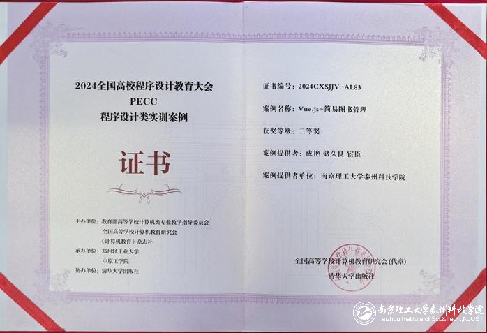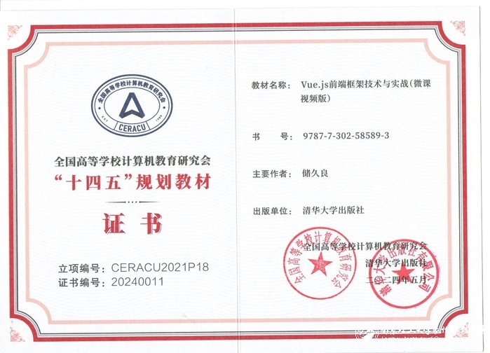 在此次大会上,由公司Web前端框架技术教学团队由储久良老师编写的《Vue.js前端框架技术与实战》教材在此次会议上获全国高等学校计算机教育研究会“十四五”规划教材;由宦臣等老师设计的《基于Spring Boot+ MyBatis Plus + ECharts的项目管理平台的设计与实现》荣获全国一等奖;由成艳等老师设计的《Vue.js简易图书管理》荣获全国二等奖。公司在教材建设和程序设计教育领域所做出的努力和取得的成果,得到了业界的广泛认可和肯定。