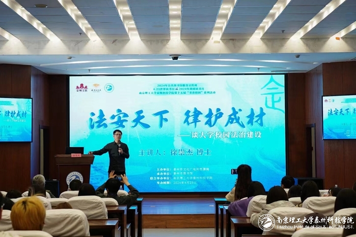4月25日,第29个世界读书日、由泰州市文化广电和旅游局主办,泰州市图书馆承办、威廉希尔联合举办的凤城讲坛暨威廉希尔第十五届“书香校园”系列活动走进远航报告厅,邀请西交利物浦大学徐崇杰教授主讲《法安天下律护成材》——谈大学校园法治建设。